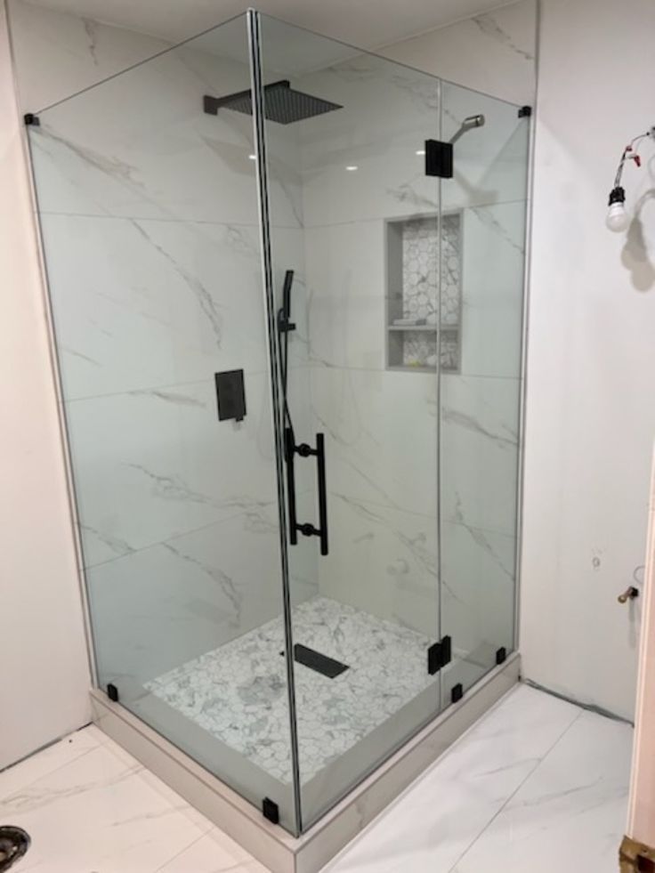 We offer a range of finishes, sizes, and fittings. Choose between matte black, chrome, or stainless-steel hardware, and select your preferred glass thickness for added safety and comfort. All of our installations are custom-made to your bathroom’s exact measurements for a perfect fit.